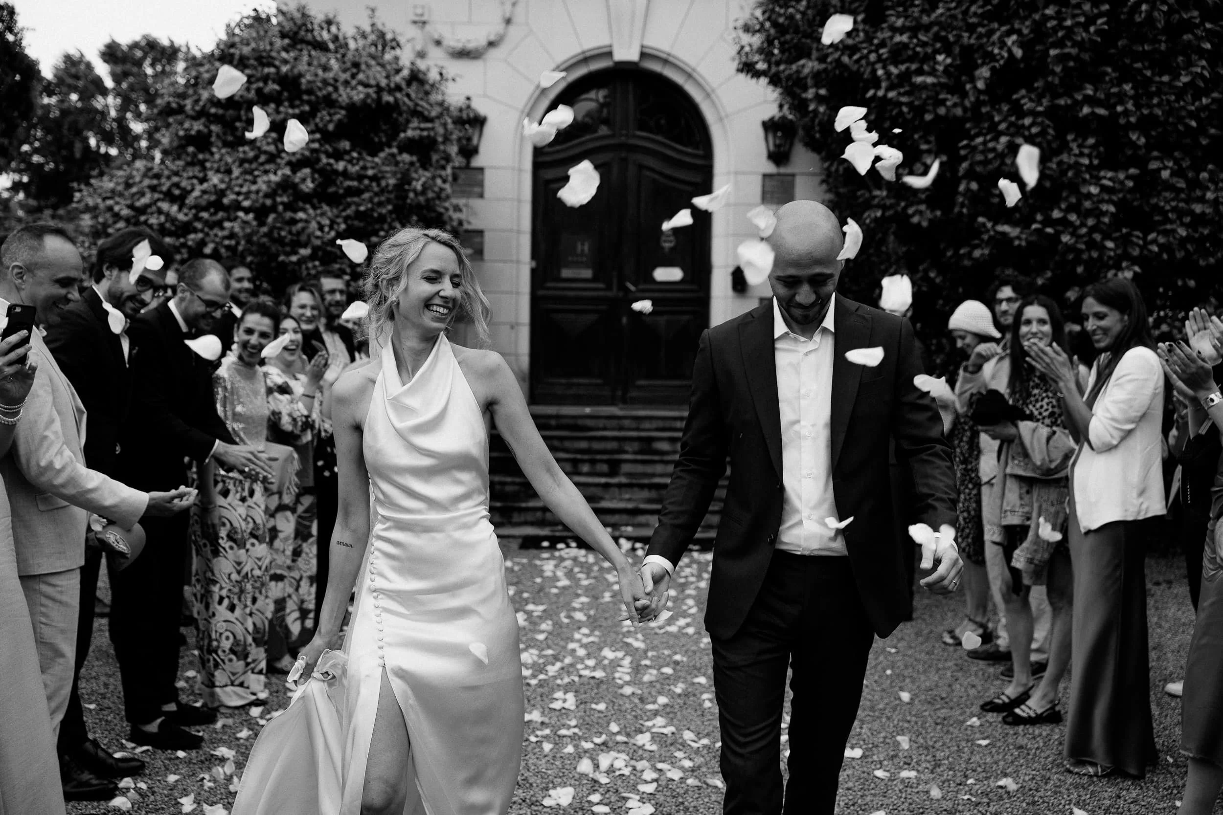 True connoisseurs of design and craftsmanship, Clara and Vincent infused their wedding with refined details and heartfelt gestures. Clara wore a couture masterpiece—a custom wedding dress designed and created by her & her close friend Philippe, whose 40-year career in fashion includes working with iconic houses like Balmain and Jacquemus. This gown was not just a garment but a living expression of their shared passion for haute couture, layered with an emotional family narrative that added even greater significance.